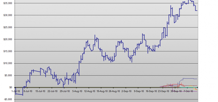 An up and then down week. By Saturday my profit sat at a very nice $45,000, but over the next 3 days that crashed back to earth to end a little shy of $38,000. Soccer...